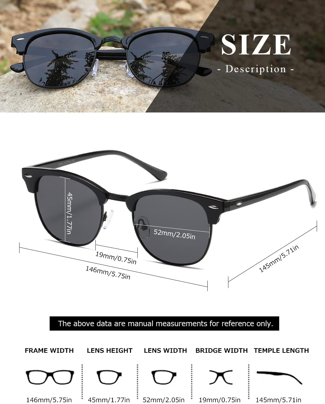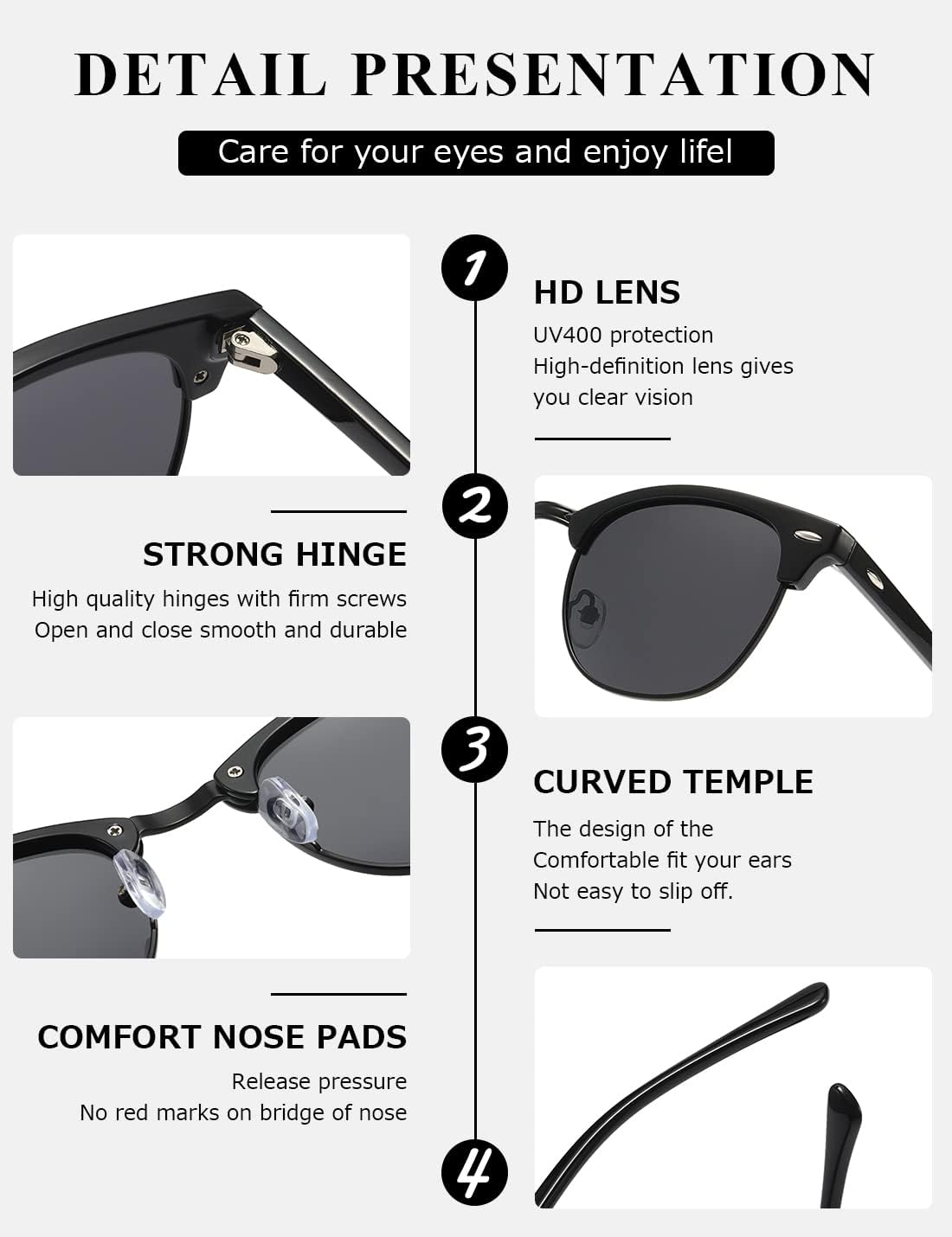 AEVOGUE Polarized Sunglasses For Women And Men Semi Rimless Frame Retro Sun Glasses AE0369