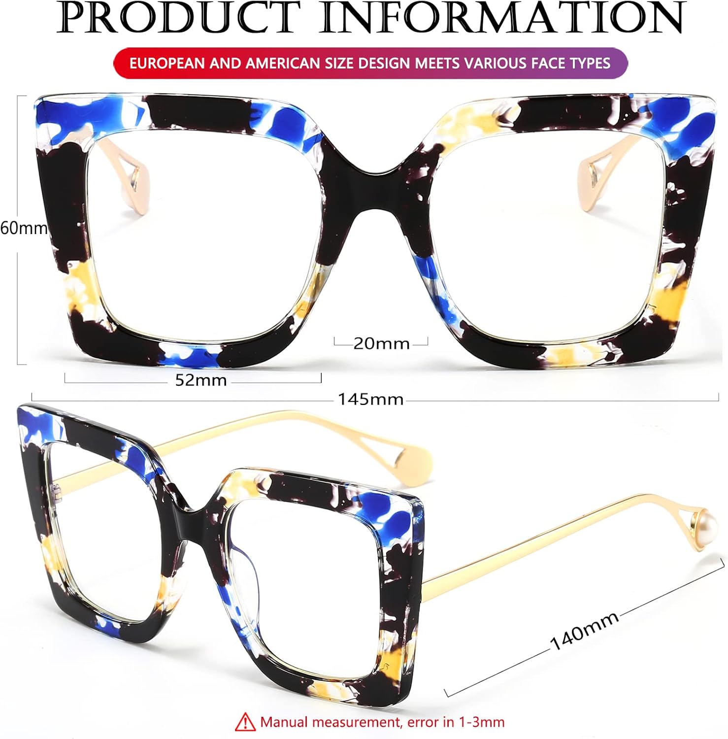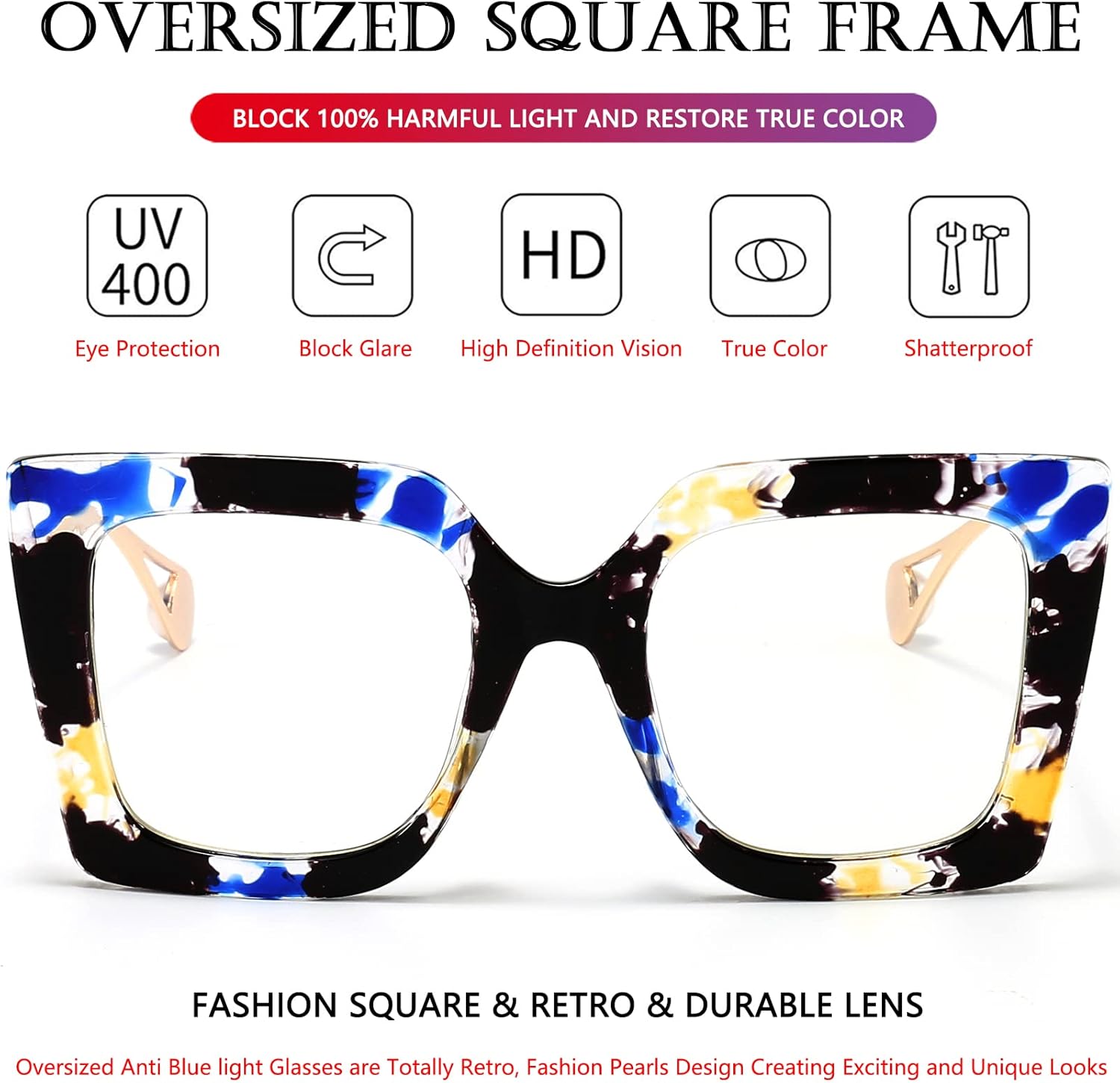 AIEYEZO Oversized Blue Light Glasses for Women, Anti Fatigue Prevent Headache Computer Eyeglasses