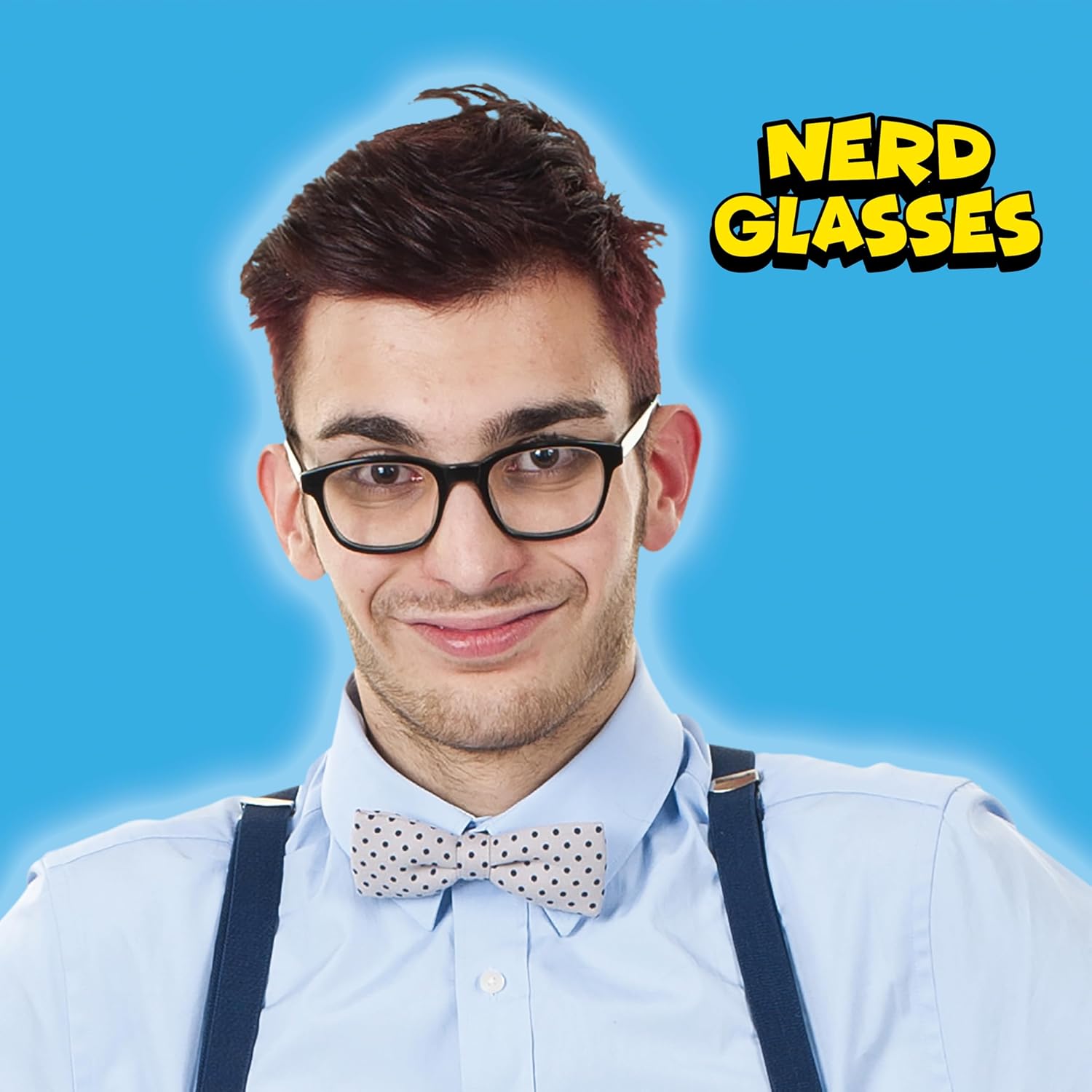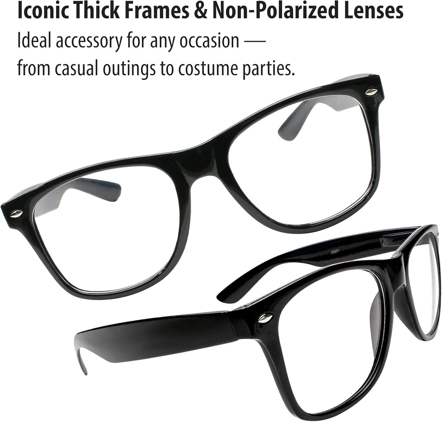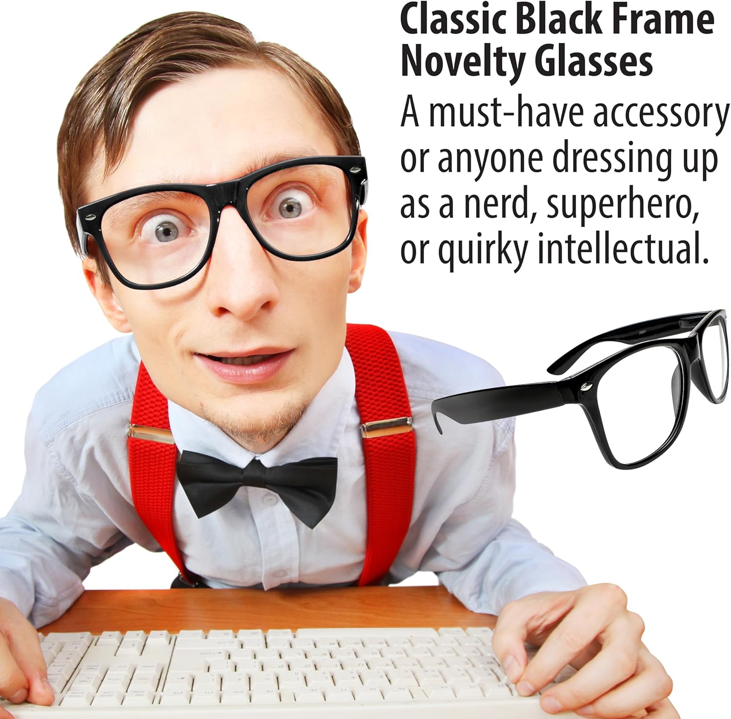 Kangaroo Black Fake Glasses – Classic Superhero Glasses Frames – Retro Clear Non-Prescription Nerd Costume Eyeglasses for Men & Women for Christmas Cosplay – Unisex Nerdy Accessories for Costumes