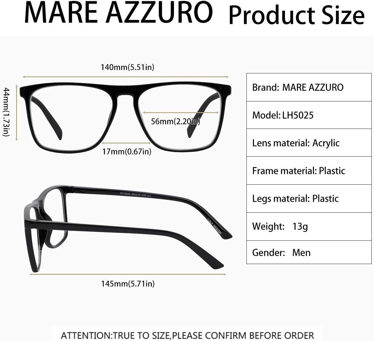 MARE AZZURO Blue Light Blocking Eyewear Men Computer Gaming Glasses Blue Light Eyeglasses Black Spectacles
