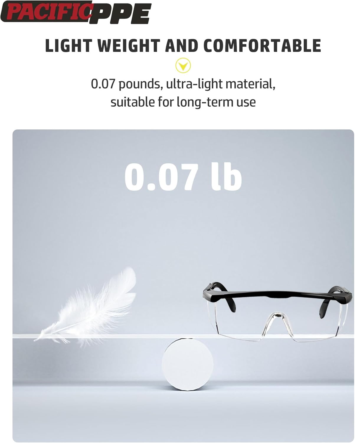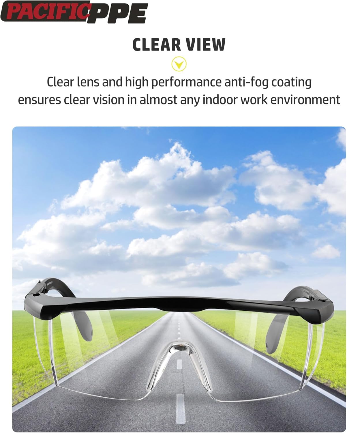 PACIFIC PPE 2 Pack Safety Glasses for Men and Women, ANSI Z87 Anti-fog Eyewear with Scratch Resistant Clear Wraparound Lenses, Adjustable Lab Goggles, UV Protection