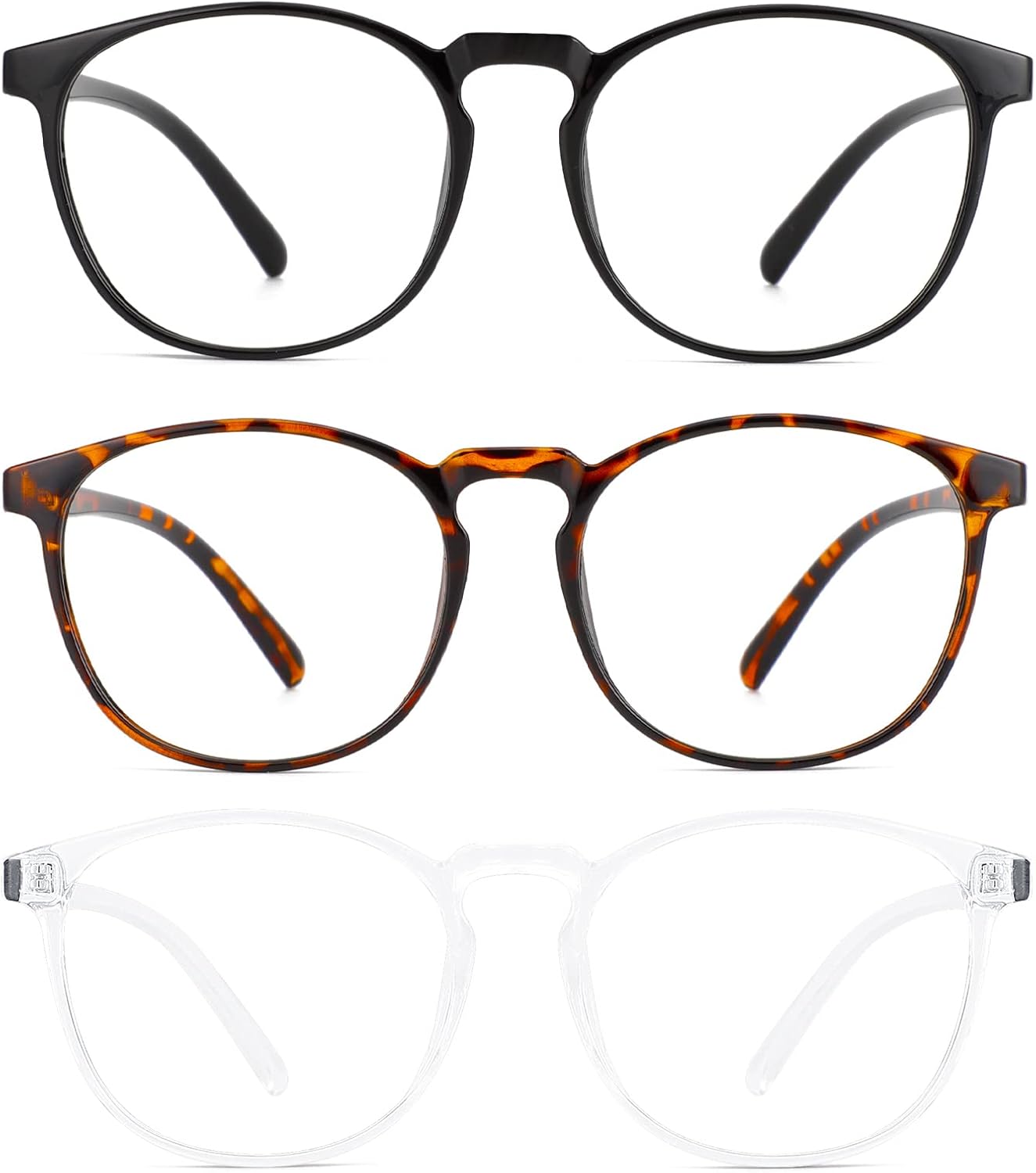 Przene 3 Pack Blue Light Blocking Glasses Women/Men,Retro Round Computer Glasses Anti Eye Strain/UV/Glare, Gaming Glasses. (Black/Crystal/Amber)