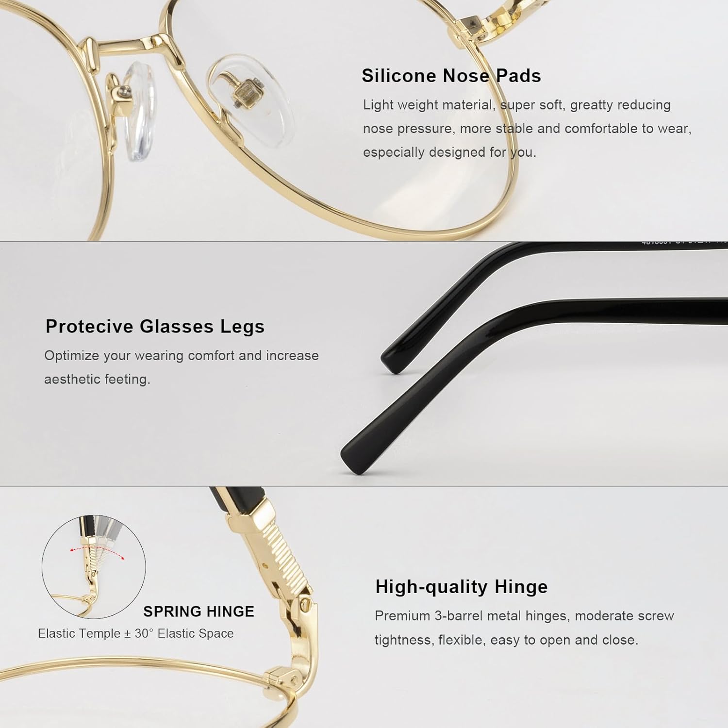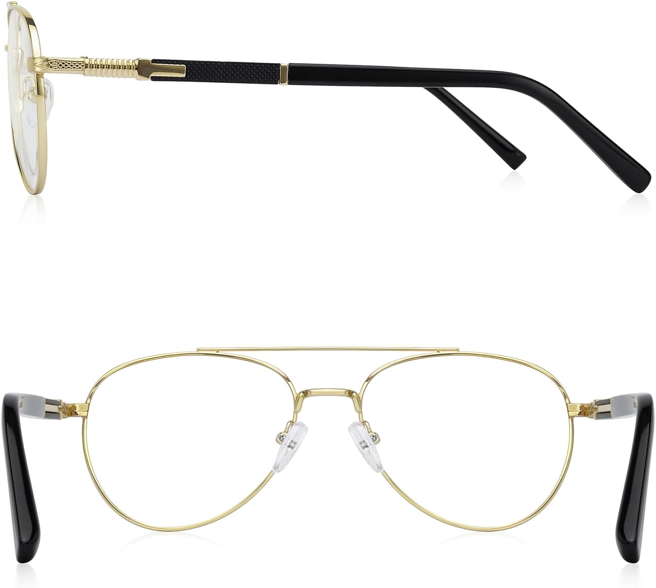 RB.Pilot Classic Aviator Reading Glasses for Men Women Light Blocking Computer Readers Spring Hinge Metal Frame Acetate Legs