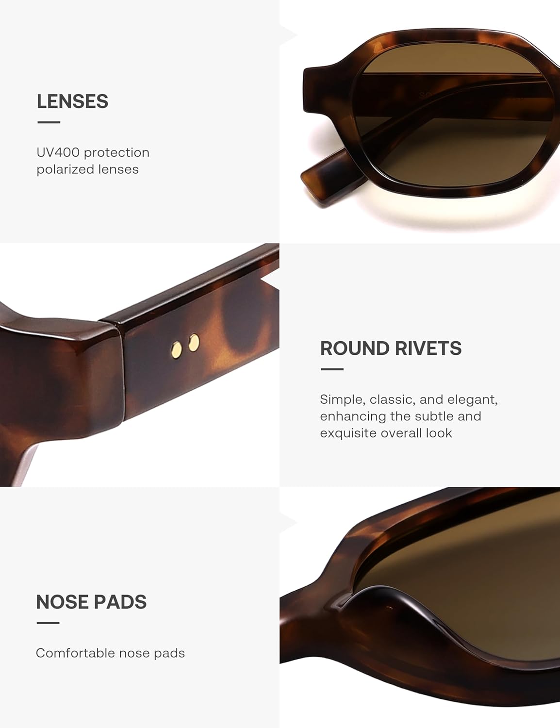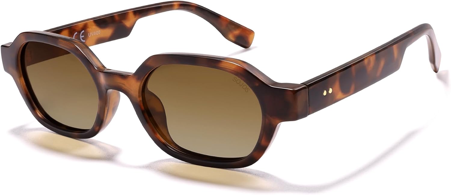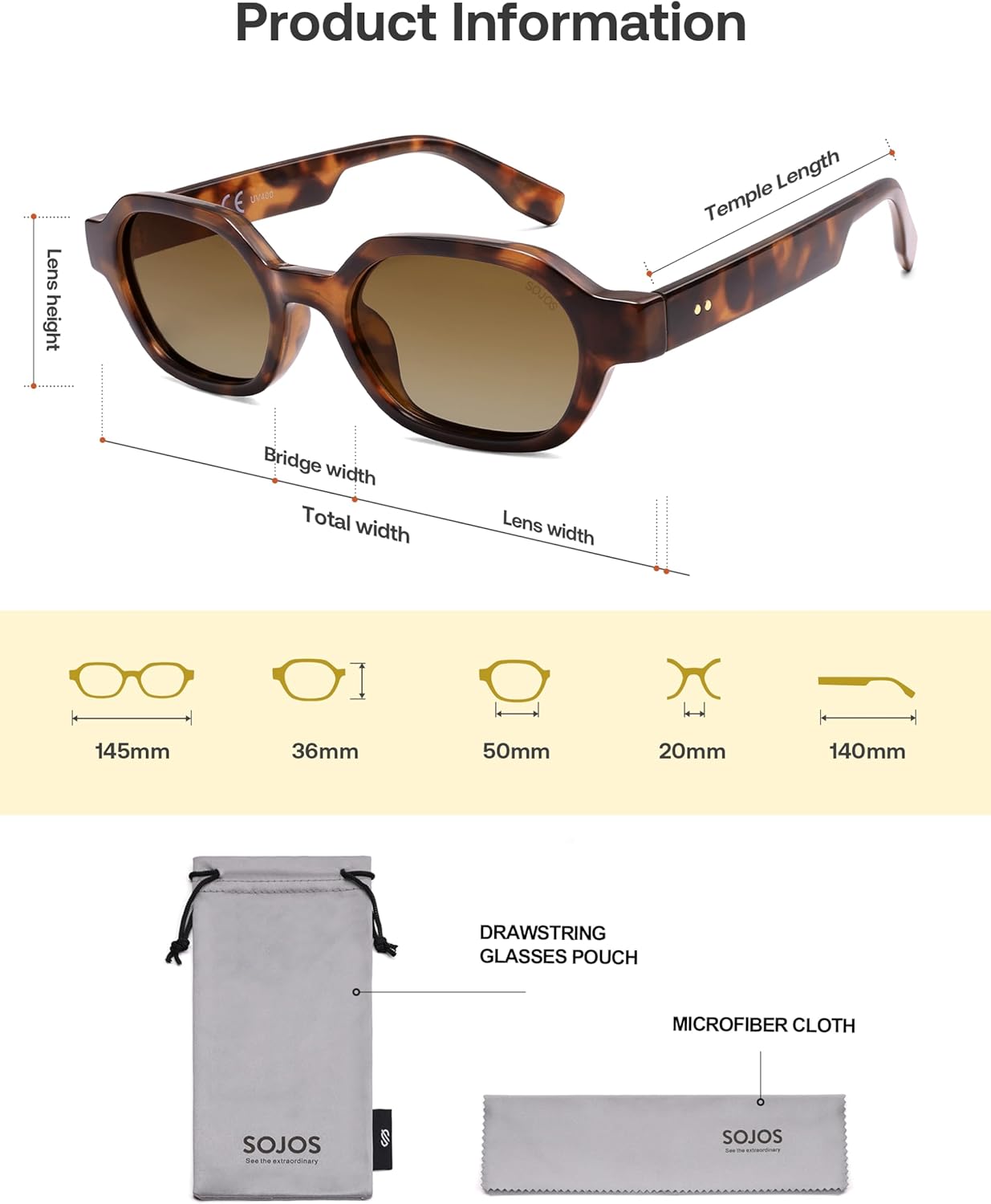 SOJOS Retro Polarized Hexagon Sunglasses for Women Men, UV400 Trendy Rectangle 70s 80s 90s Shades SJ2389