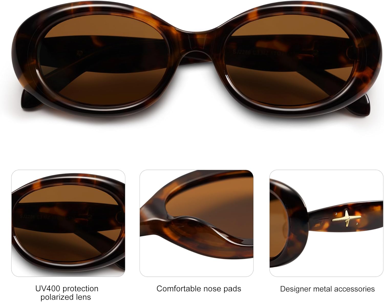 SOJOS Small Retro Oval Polarized Sunglasses for Women Men 90s Vintage UV400 Protection Tiny Sun Glasses SJ2286