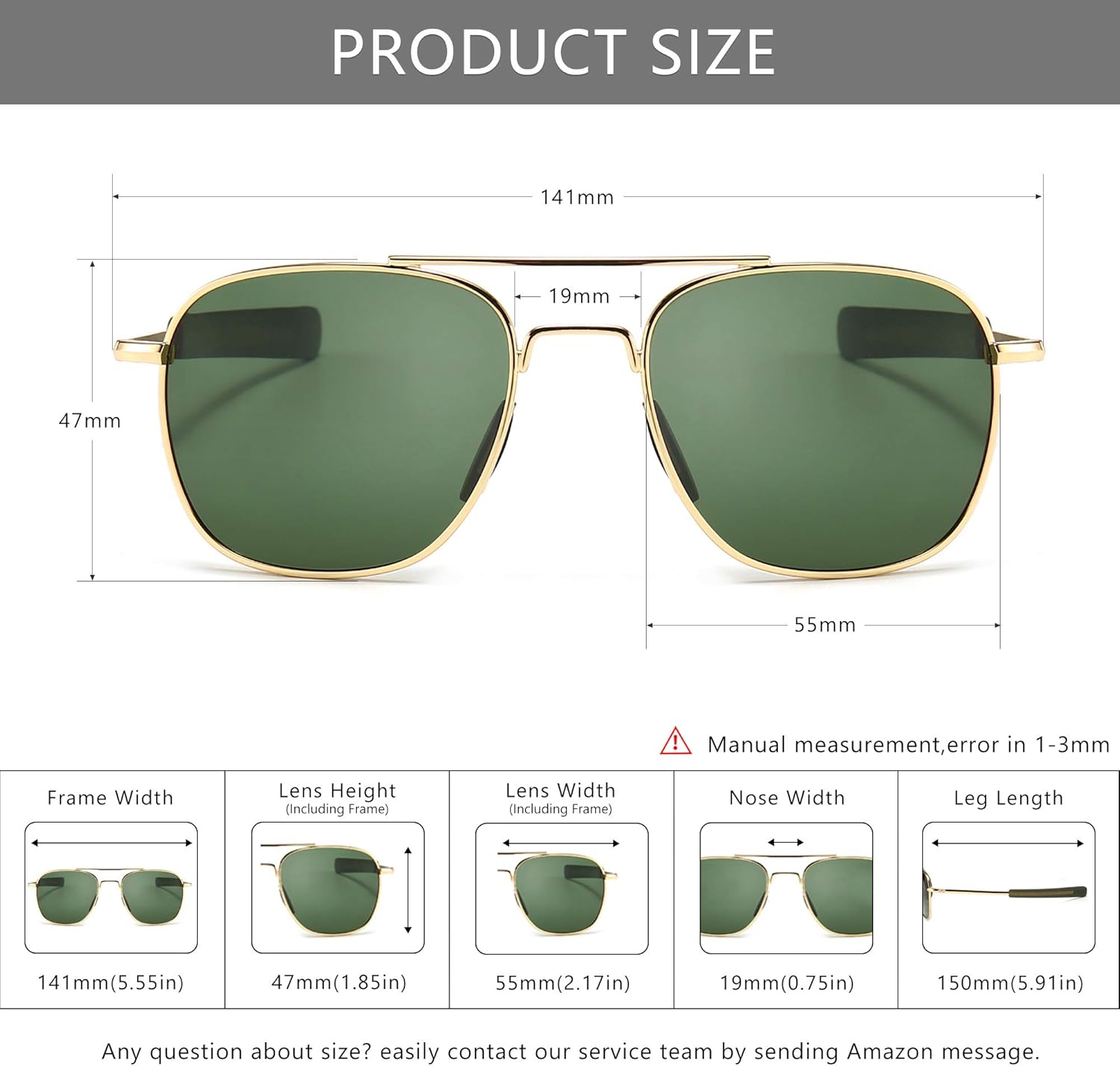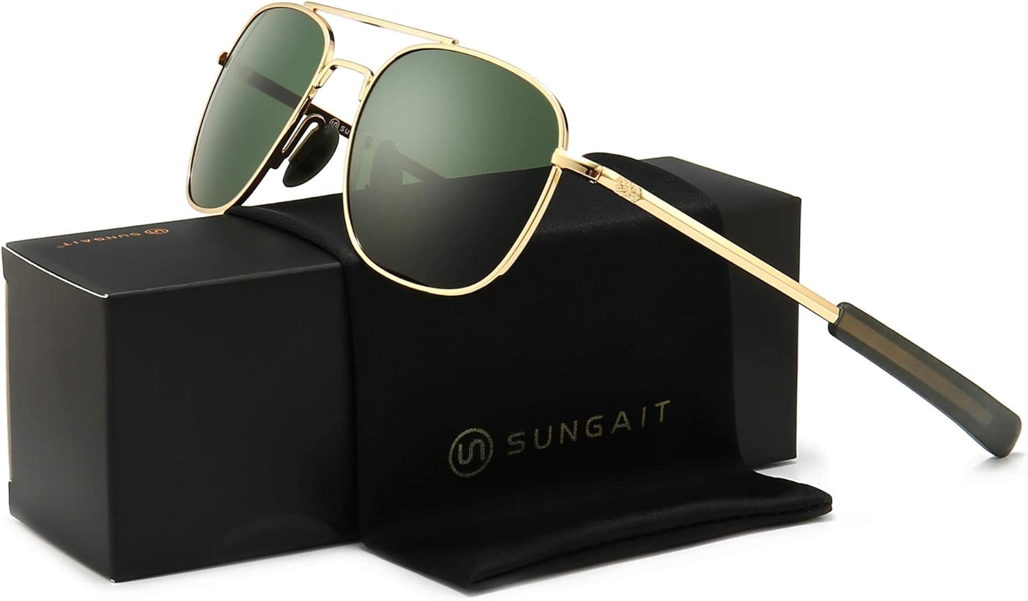 SUNGAIT Men’s Military Style Polarized Pilot Aviator Sunglasses Bayonet Temples