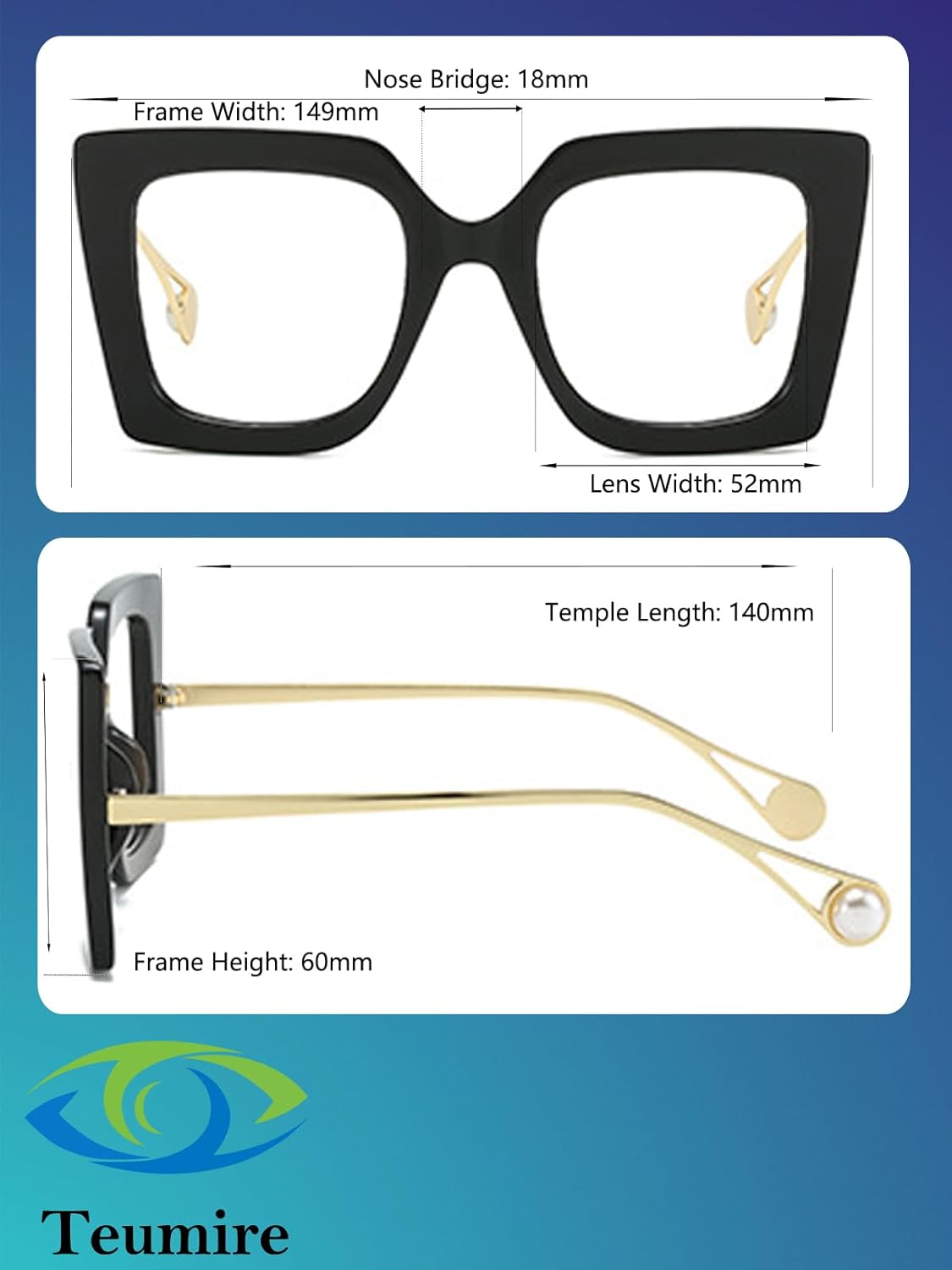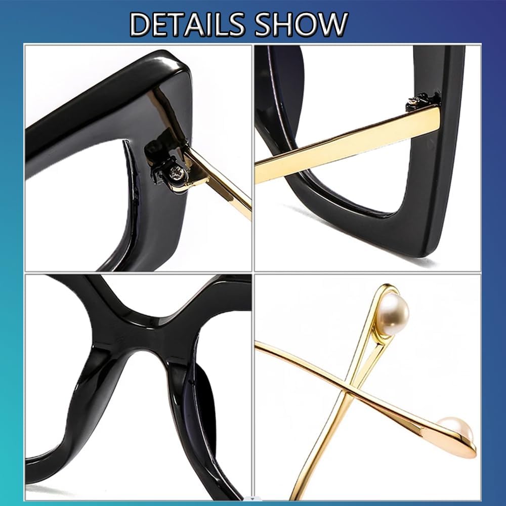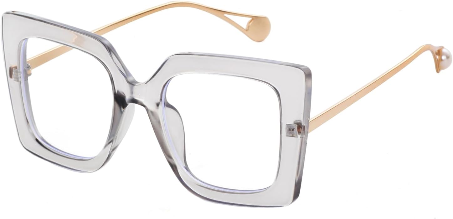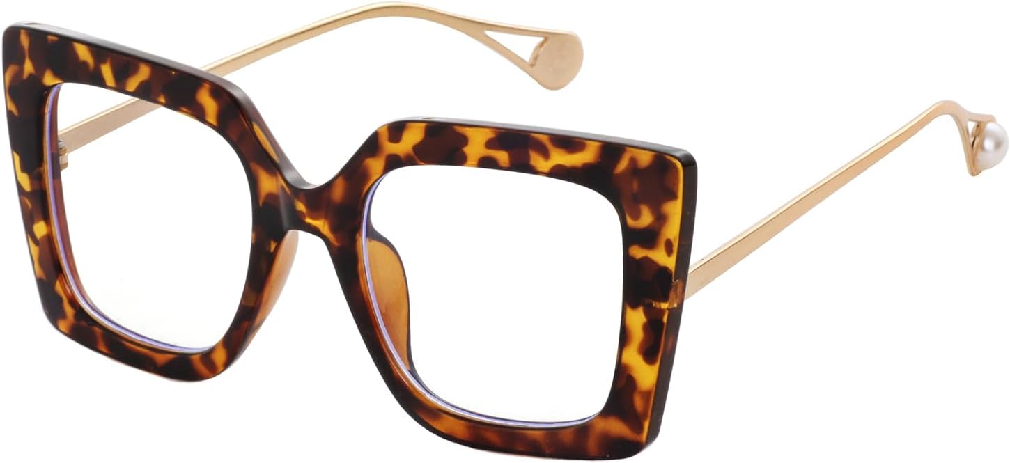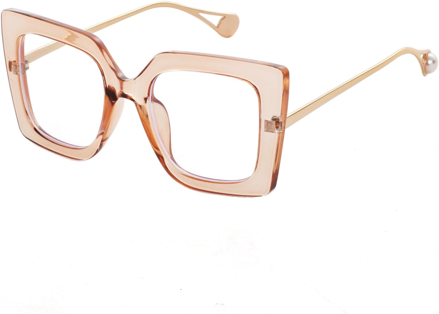 Teumire Oversized Square Blue Light Blocking Glasses for Women Thick Fashion Pearl Inlay Arm Eyewear Computer Eyeglasses