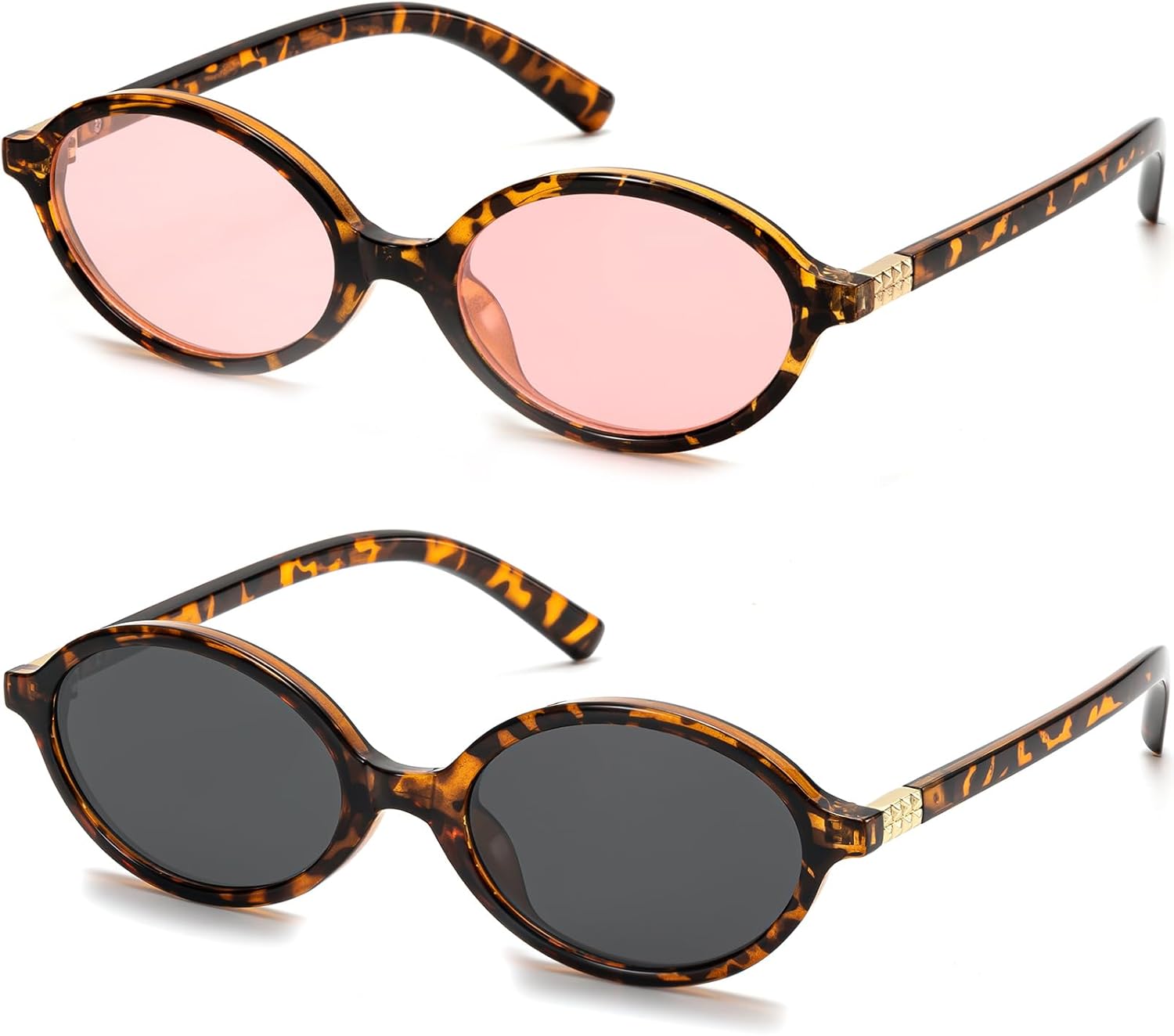 ViewJoy Retro Oval Sunglasses for Women Vintage 90s Y2K Trendy Designer Sun Glasses